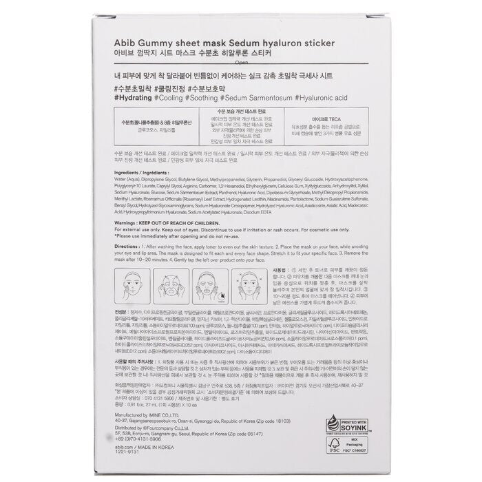 Abib Gummy Sheet Mask Sedum Hyaluron Sticker 27ml x10pcs