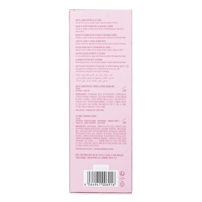 - Two-piece kit: Matte Liquid Lipstick in #103 Better Not Pout (3 ml / 0.1 oz) and Lip Liner in the same shade (1.1 g / 0.039 oz)